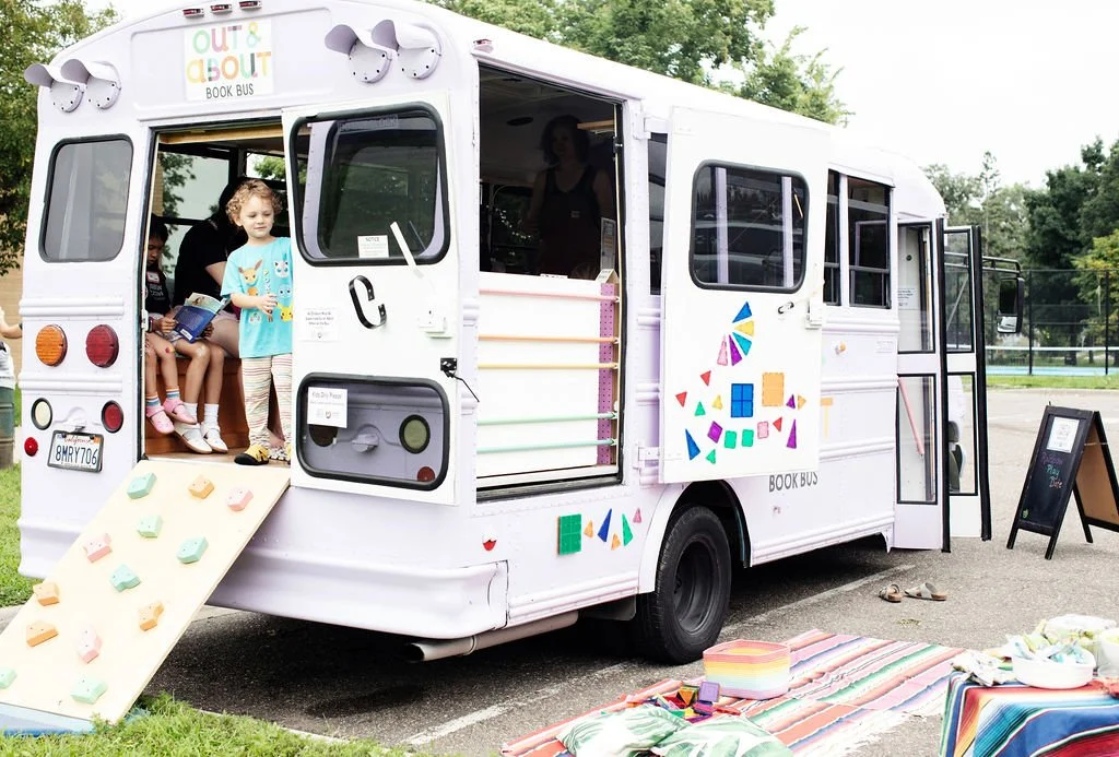 Out & About Book Bus will come to your event for 1-3 hours and be available for people to explore the bus, borrow or purchase books, and enjoy community.
